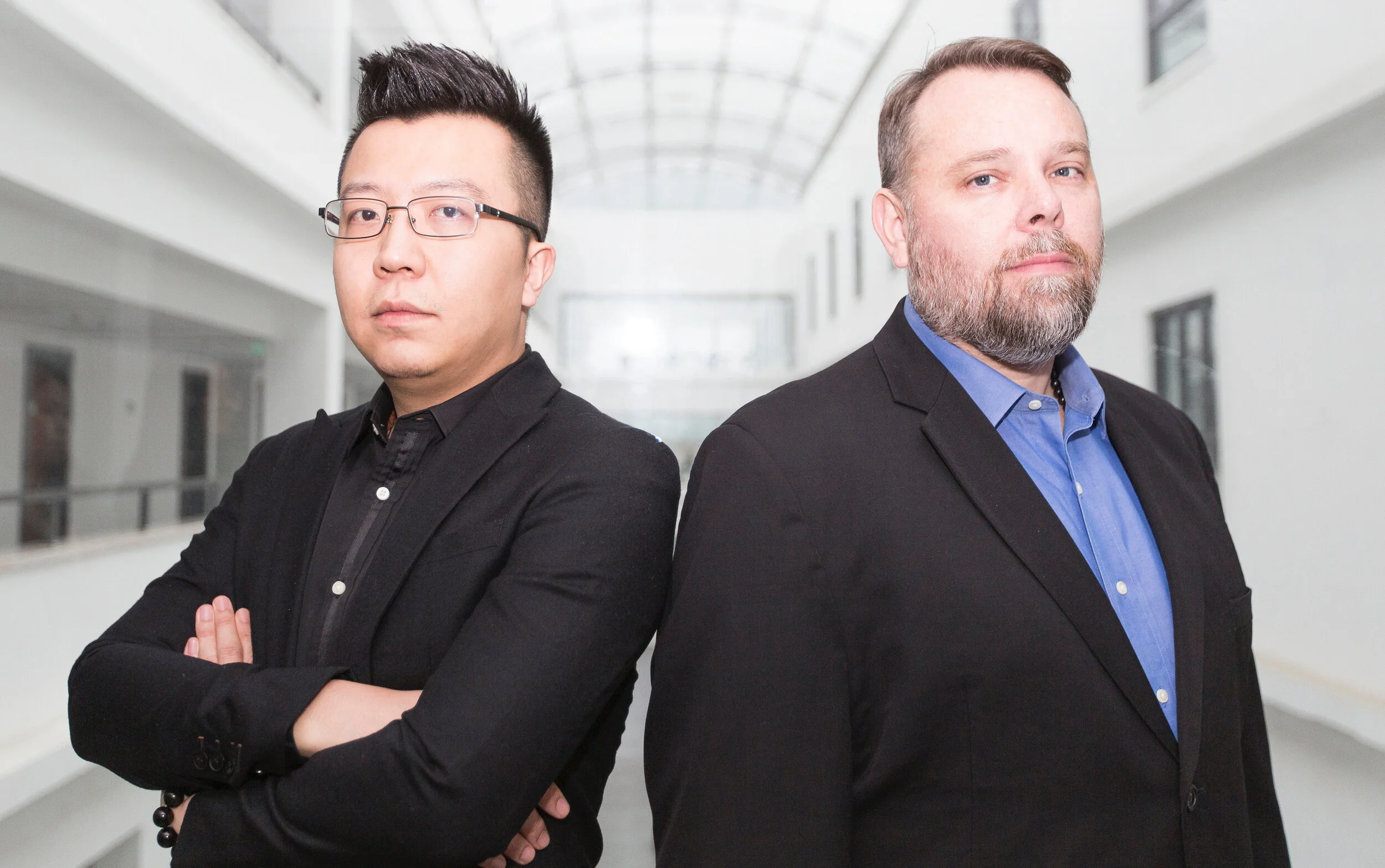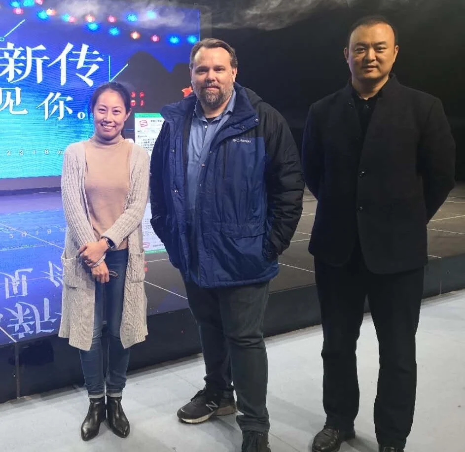 Brendan Davis on the set of “The Unwinding”, directing Kevin Michael West as DAVID.